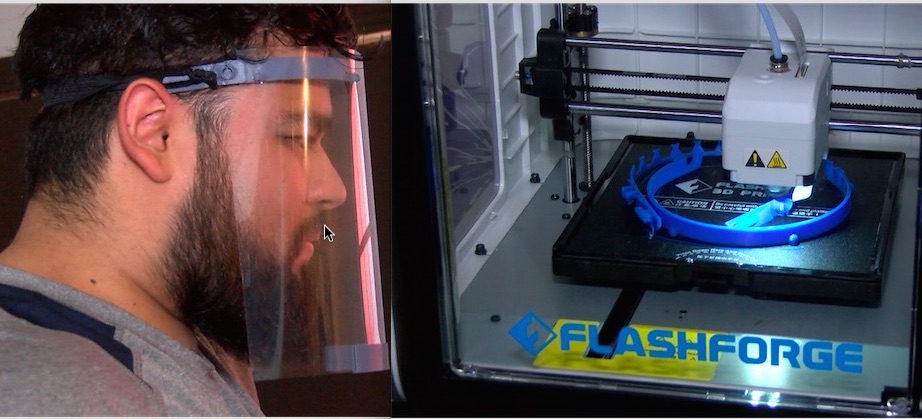 La impresora hace los plásticos de sujeción, manualmente le ponen un acetato, que es el que hace la función de mascarilla de protección y con elásticos las sujetan a la cabeza.